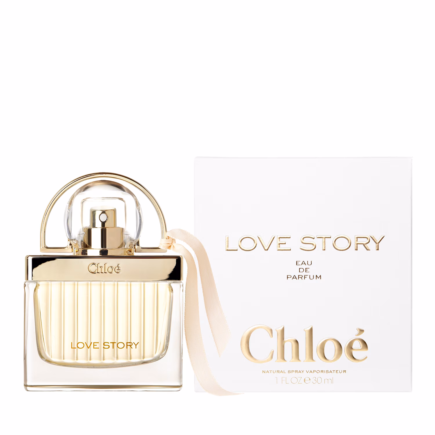Chloé Love Story Eau de Parfum, aşk ve romantizmi sembolize eden bir asma kilit tasarımı olan şişede sunuluyor ve üzerinde bulunan kurdele, kıvrımlı cam tasarımdaki kadınsallığı tamamlıyor.