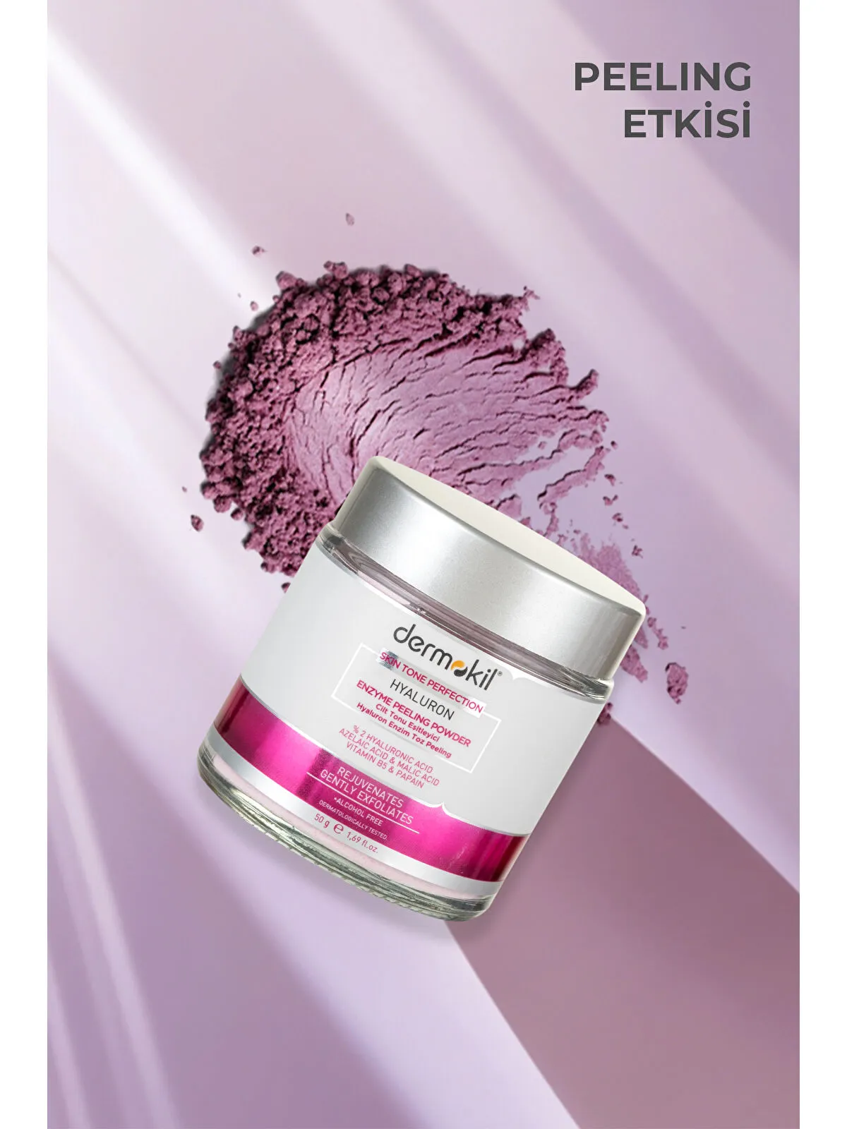ÖZELLİKLERİ Dermokil Cilt Tonu Eşitleyici Hyaluron Enzim Toz Peeling; papaya meyvesinden elde edilen Papain adlı doğal enzimi içerir. Cilt derisi üzerinde micro boyutta peeling etki sağlayan bu enzim ile Azelaic Acid ve Malic Acid ölü deriyi uzaklaştırır. Hyaluronik Acid ve Vitamin B5 cildi nemlendirir. Cildin ışıltılı ve aydınlık bir görünüm kazanmasına yardımcı olur.