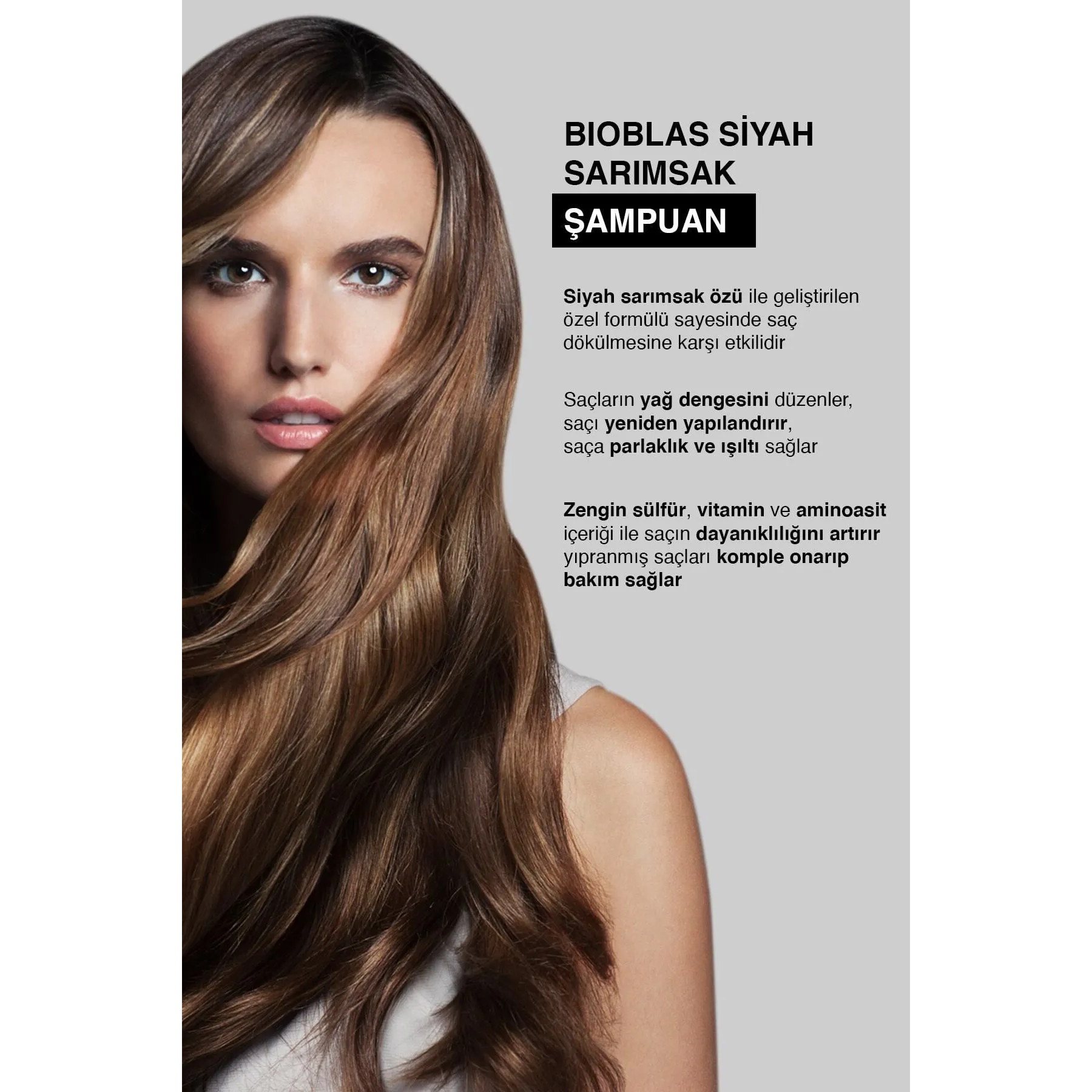 Bioblas Siyah Sarımsak Şampuanı, siyah sarımsak özü ile geliştirilen özel formülü sayesinde saç dökülmesinin azalmasını sağlamaya, saçların yağ dengesini düzenlemeye, saçı yeniden yapılandırmaya, saça parlaklık ve ışıltı kazandırmaya yardımcı olur. Zengin sülfür, vitamin ve aminoasit içeriği ile saçın dayanıklılığını arttırmaya, yıpranmış saçları onarıp komple bakım sağlamaya yardımcı olur. Saçların kolay taranmasını ve kolay şekil almasını sağlamaya yardımcı olur. Kullanım Şekli: Islak saçınızın tamamına, özellikle kökten başlayarak uç kısımlarına doğru köpürterek uygulayınız ve durulayınız. Saçınızın ihtiyacına göre tekrarlayınız.